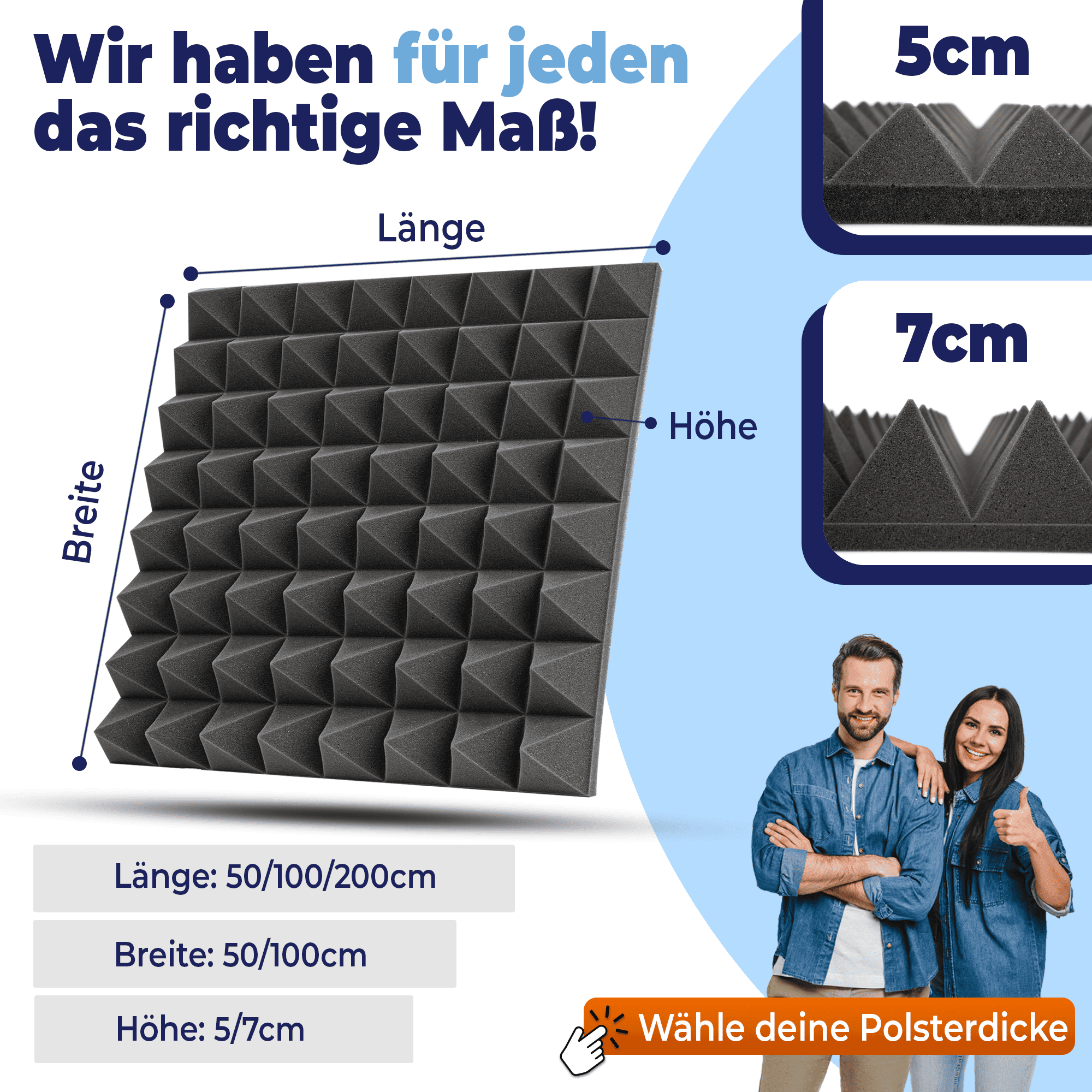Der Saarschaum® Akustik Pyramidenschaumstoff ist eine hochwertige Lösung zur gezielten Verbesserung der Raumakustik. Entwickelt für eine effektive Schallabsorption im Innenraum, reduziert er störenden Hall, Nachhall und Echo und sorgt für eine deutlich klarere Klangwiedergabe.