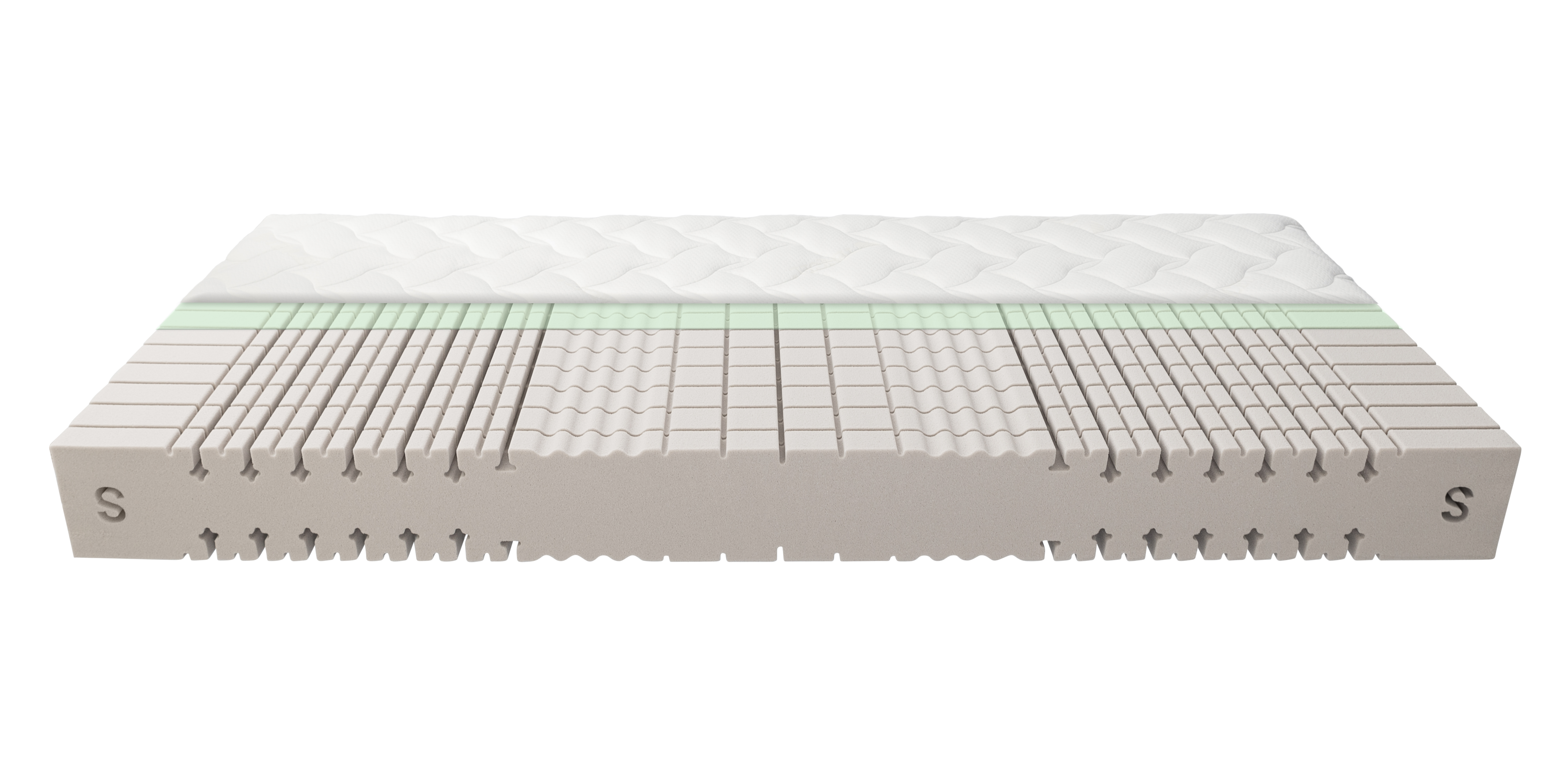 - Schnitt: Ergonomische 7-Zonen-Würfelstruktur