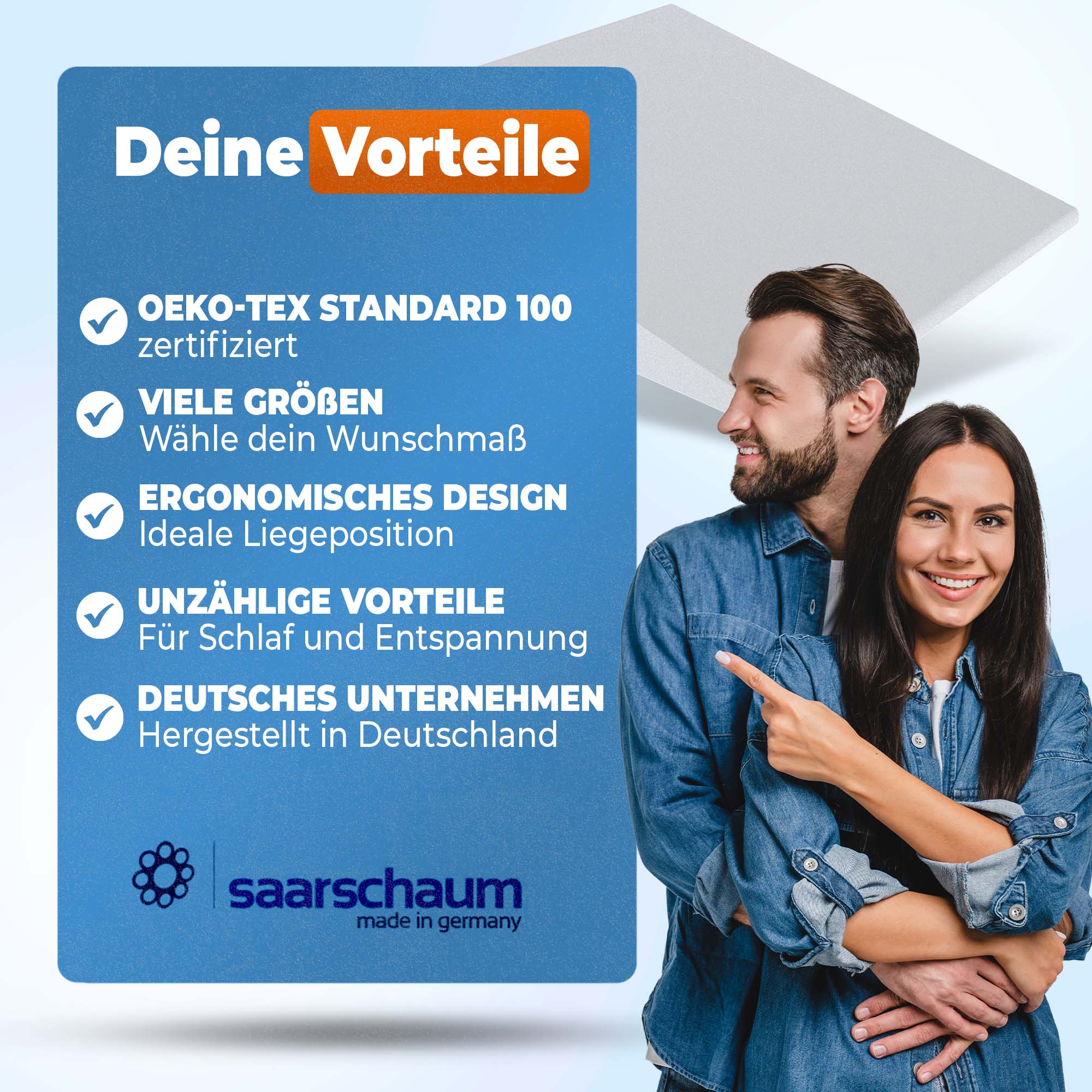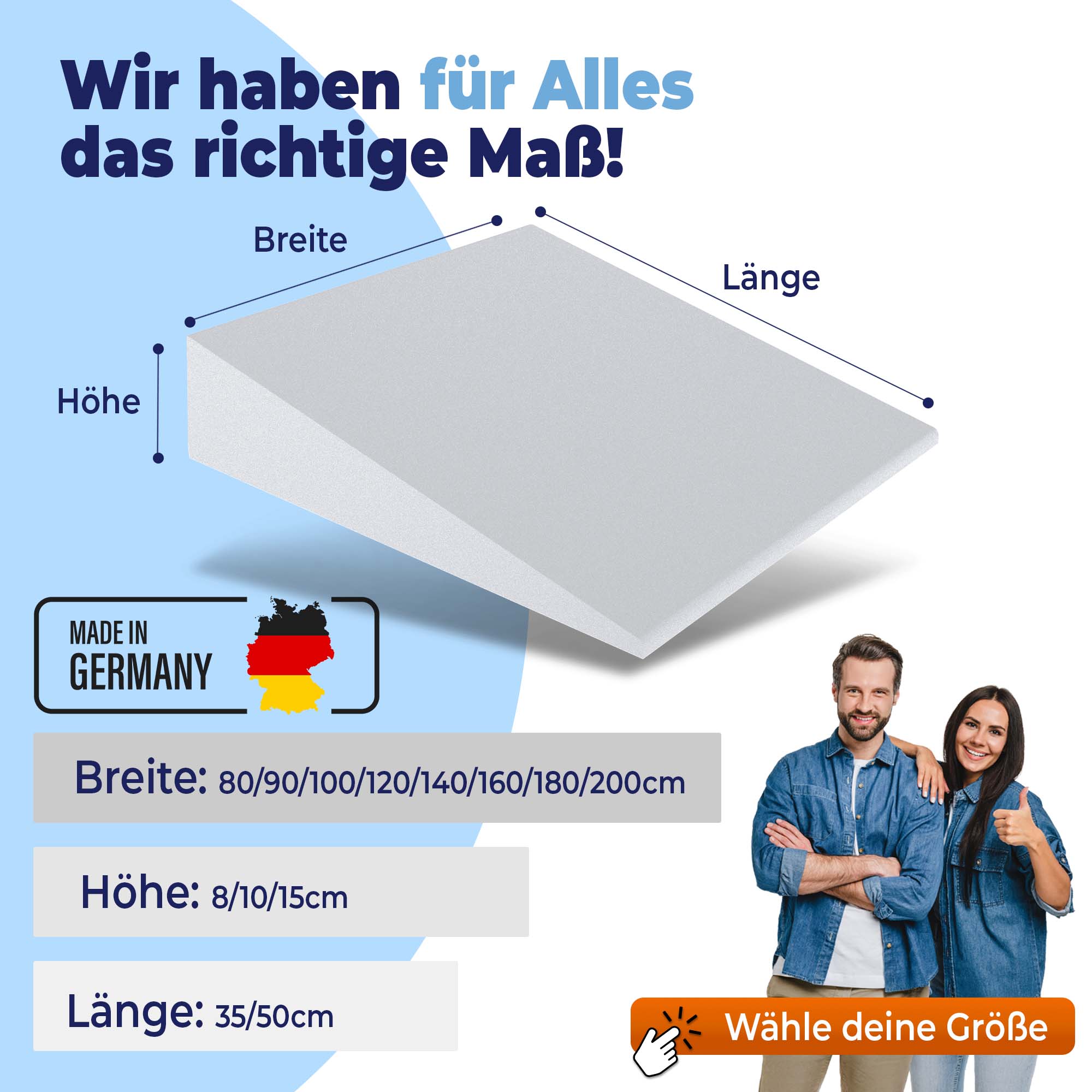 Zuschnitt nach Maß möglich: Wählen Sie direkt Ihre Wunschgröße im Saarschaum-Zuschnittrechner – frisch für Sie zugeschnitten.