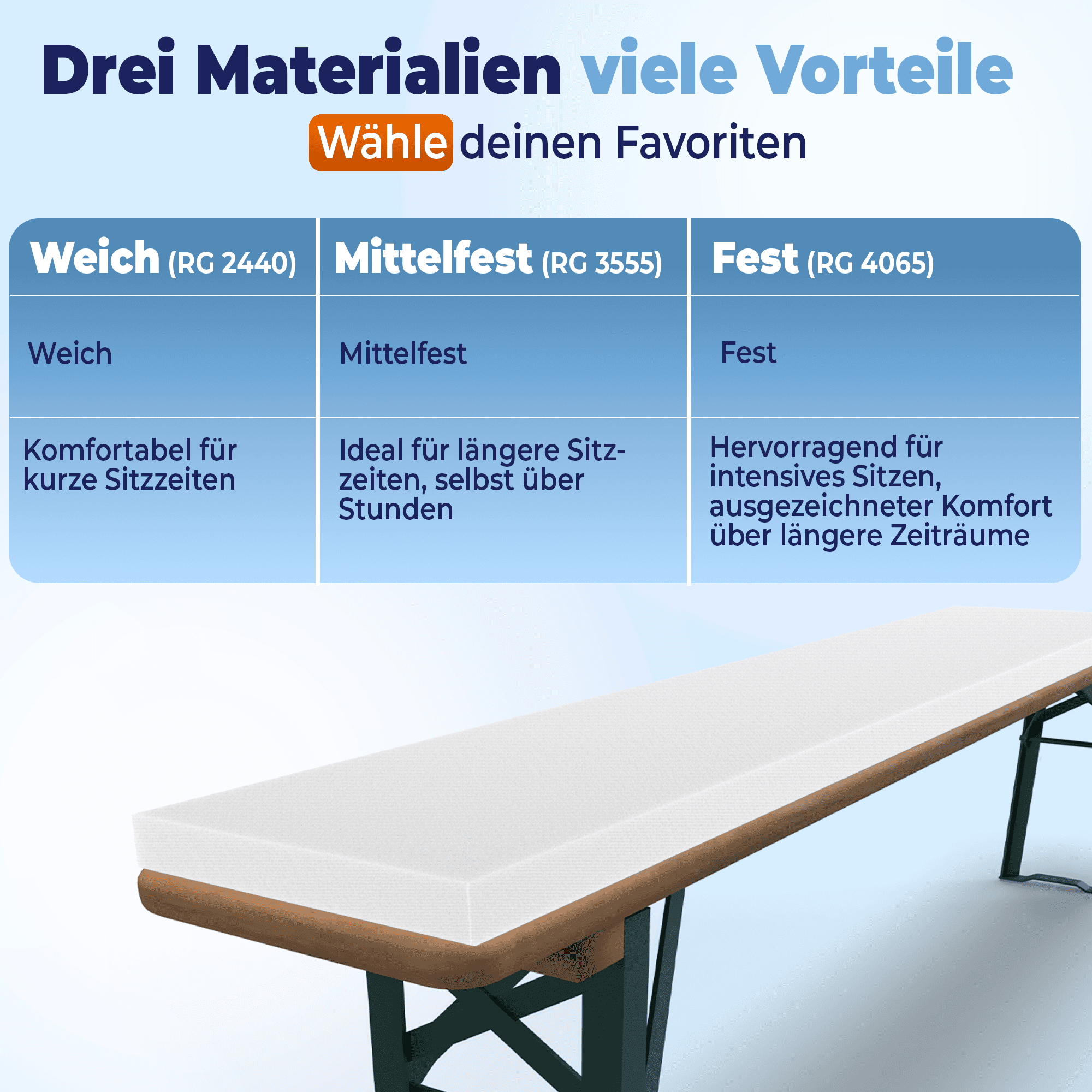 Bierbankauflagen/ Polster für Bierbank / 220x25x2 - 12 cm weich/mittel/fest